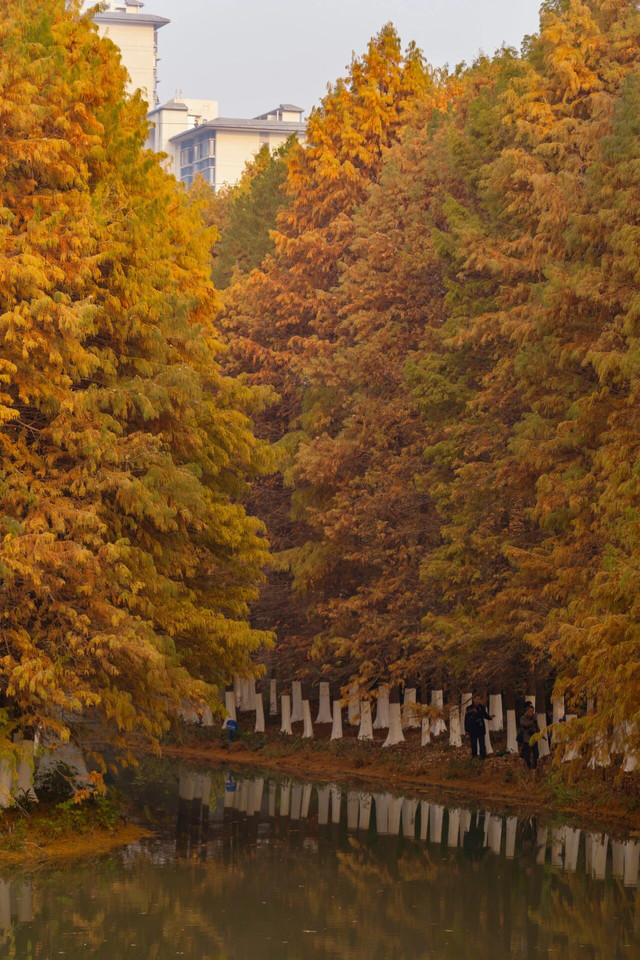 盐渎公园的水杉林真的是初冬限定的浪漫。满树的红棕色层层叠叠,阳光洒下来的时候,光影斑驳,像闯进了油画里。沿着水杉林的步道走一走,脚下是落叶沙沙,随手拍都是氛围感大片。红水杉真的是初冬最惊艳的色彩了~